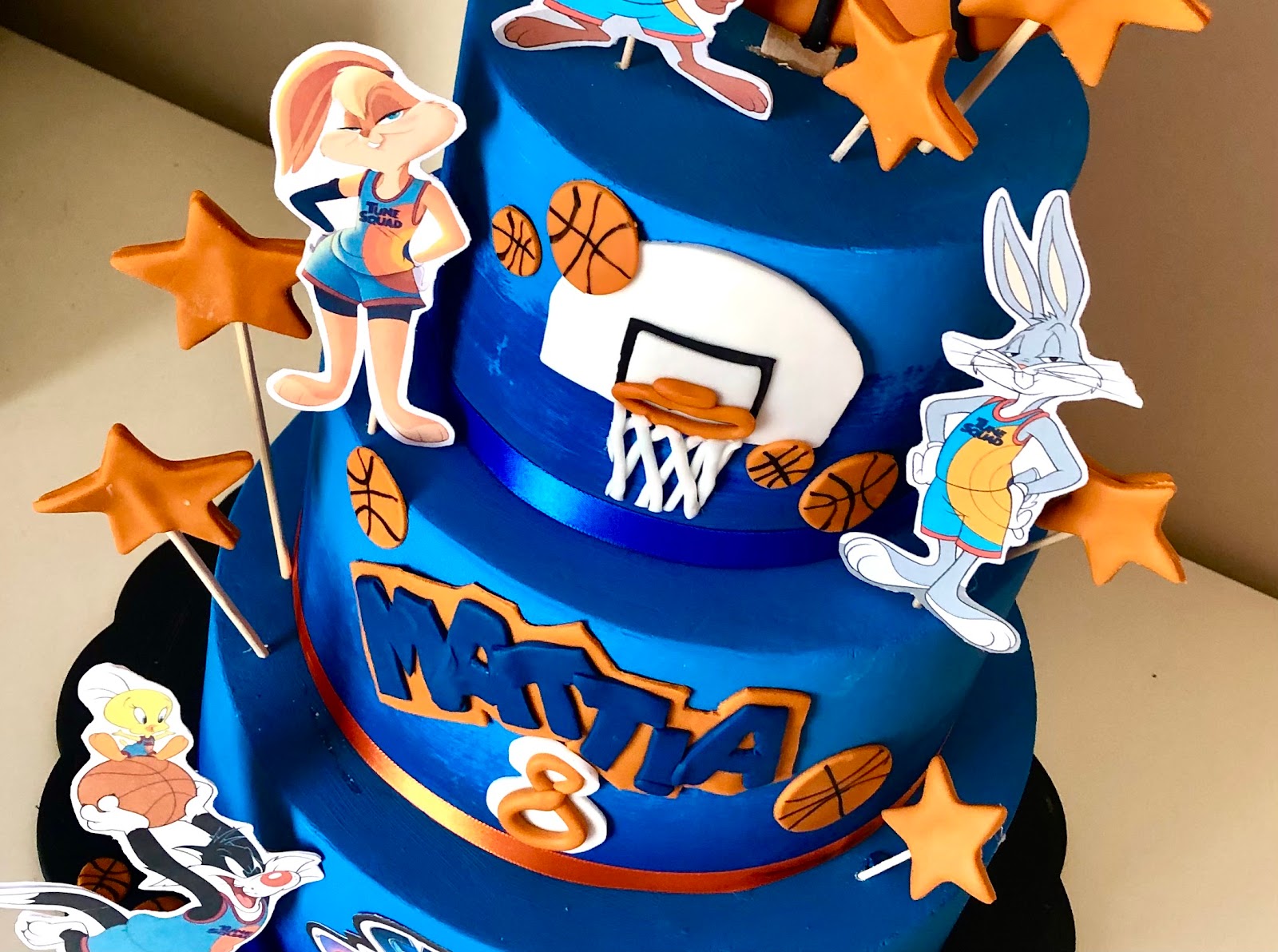 Questa è la torta che ho preparato per il mio nipotino, appassionato di basket e in particolare innamorato del film d'animazione Space Jam.